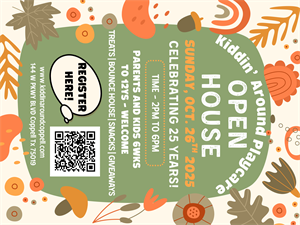 Open House! Great for families with little kids. Come check out our hourly playcare. Please register.